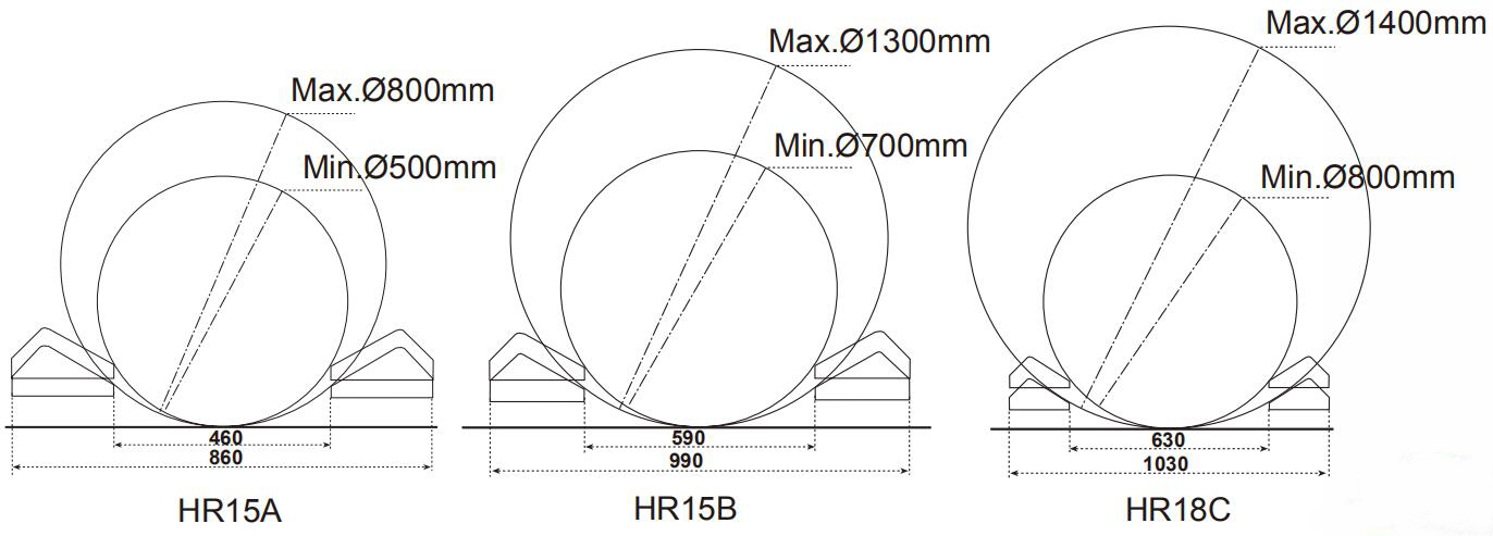 Esta toma de palés de rolos hidráulicos da serie ten 3 modelos diferentes HR15A, HR15B, HR18C para rolos de diferentes tamaños.